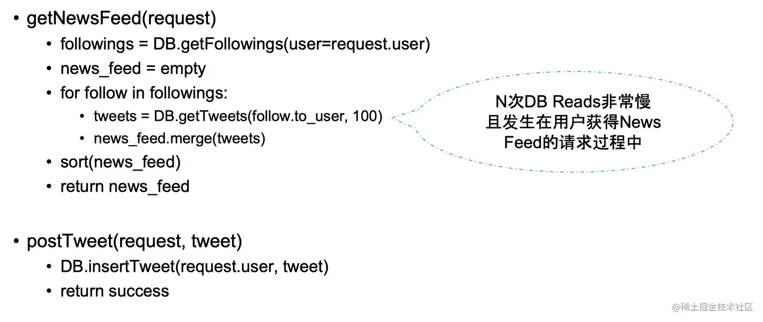 News Feed => 假如有N个关注对象,则为N次 DB Reads的时间(读DB非常耗费性能的) + K路归并时间(可忽略)