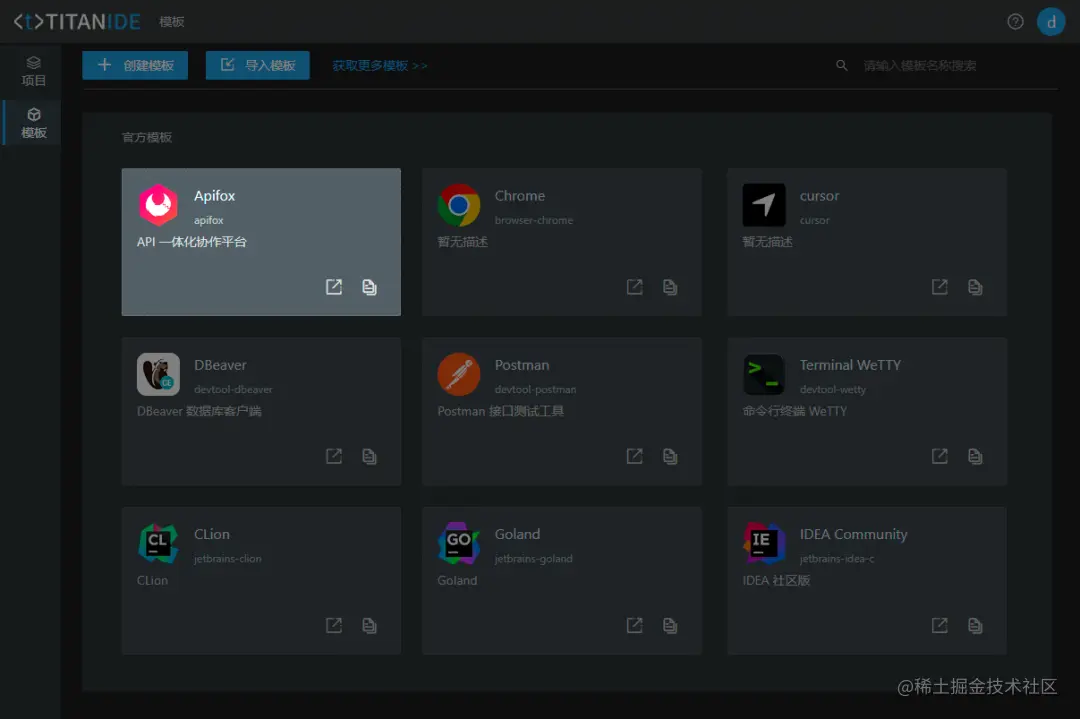 Apifox 目前已上架至 TitanIDE 模板,为 TitanIDE 用户提供快速使用接口调试工具的入口。