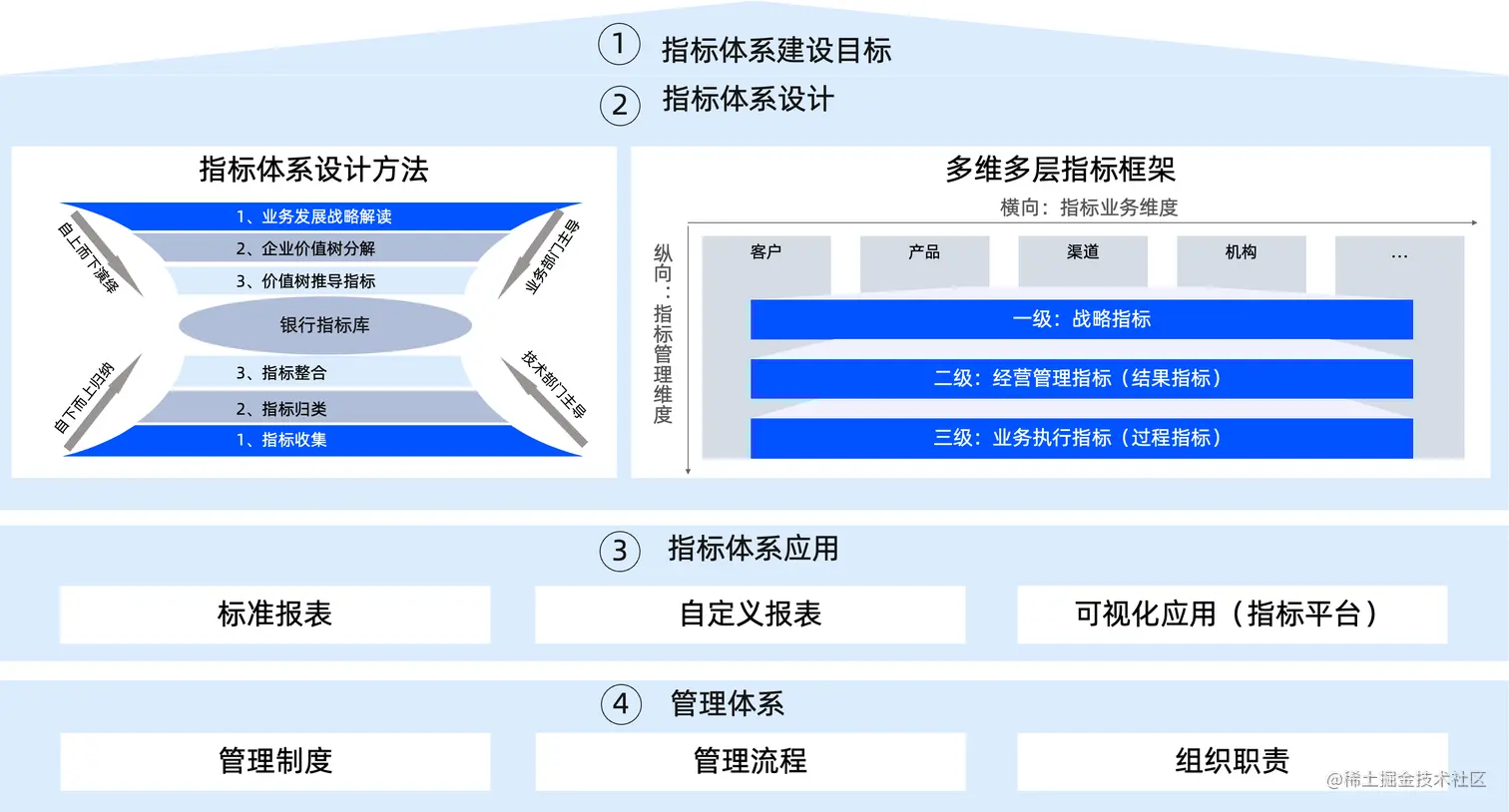 在搭建数字化解决方案过程中,我们主要利用指标(如银行经营业绩指标:客户 AUM)来直观地反映企业经营状态,通过指标开发报表以帮助业务人员进行数据分析,进而驱动管理决策、赋能数字化经营。我们早期的报表制作方式是由不同的业务线人员根据自己的业务范围,使用不同的分析工具去定义指标,这种传统的方式在跨业务合作时会带来两大痛点:
