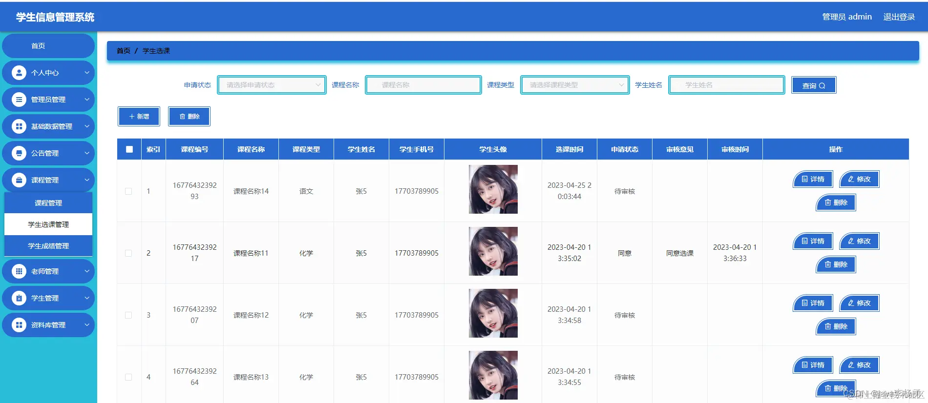 现在大家正处于互联网加的时代,这个时代它就是一个信息内容无比丰富,信息处理与管理变得越加高效的网络化的时代,这个时代让大家的生活不仅变得更加地便利化,也让时间变得更加地宝贵化,因为每天的每分钟,每秒钟这些时间都能让人们处理大批量的日常事务,这些场景,是之前的手工模式无法与之相抗衡的。对于课程信息的管理来说,传统的通过纸质文档记录信息的方式已经落后了,依靠手工管理课程信息,不仅花费较长的工作时间,在对记录各种信息的文档进行信息查询以及信息核对操作时,也不能及时保证信息的准确性,基于这样的办公低效率环境下,对于课程信息的处理就要提出新的解决方案。因为这个时代的信息一直都在高速发展,要是不抱着发展的观念看待事情,极有可能被这个市场快速遗忘,甚至被无情地淘汰掉。所以尽早开发一款学生信息管理系统进行信息的快速处理,既跟上了时代的发展脚步,也能让自己的核心竞争力有所提升。