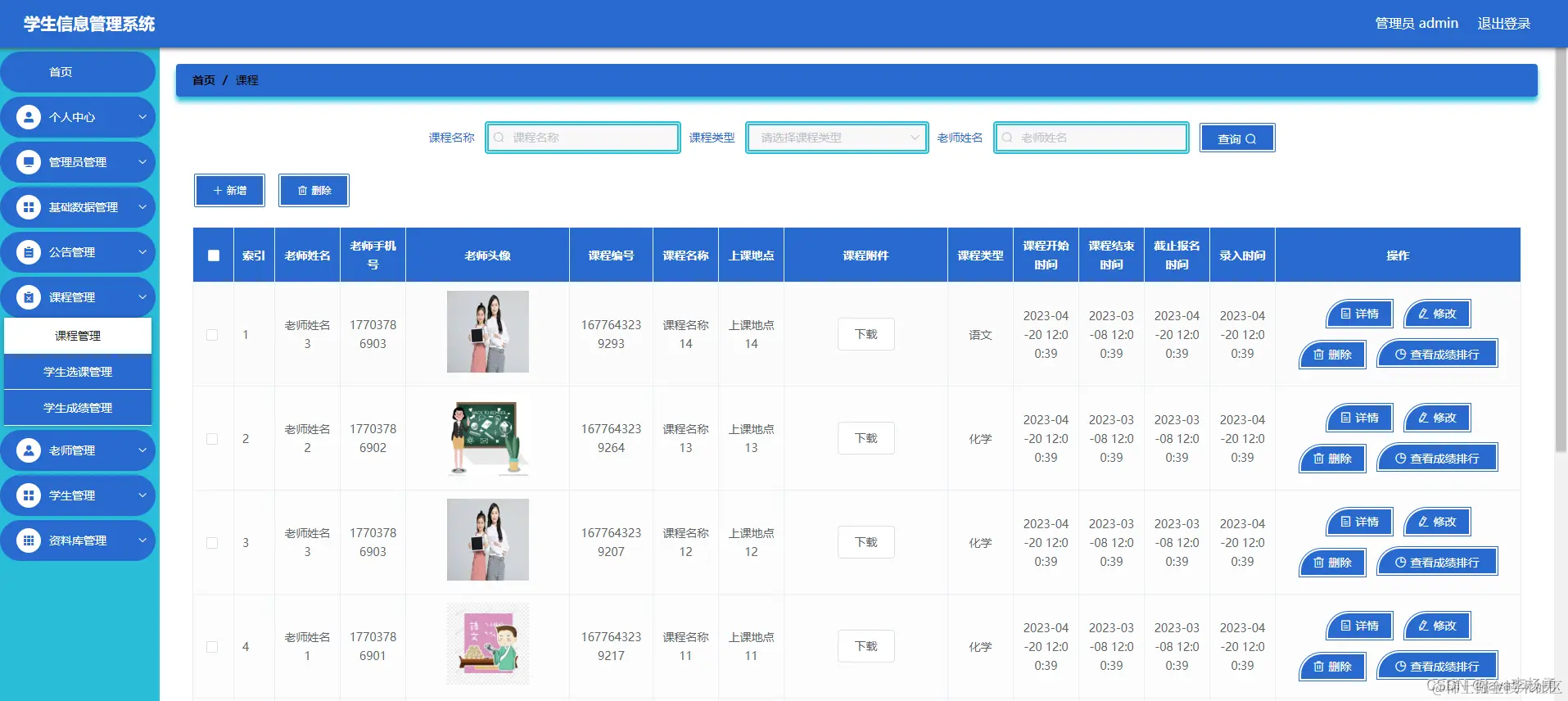 4、课程方面的信息都是通过网站进行显示,其实质是这些信息都保存在网站对应的数据库里面。只要操作员不去恶意删除信息,那么这些信息将会永久保存。