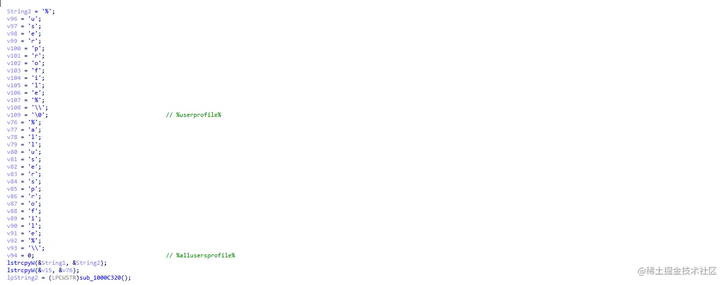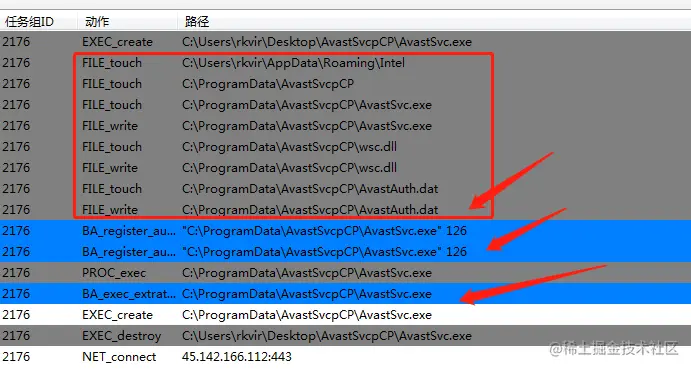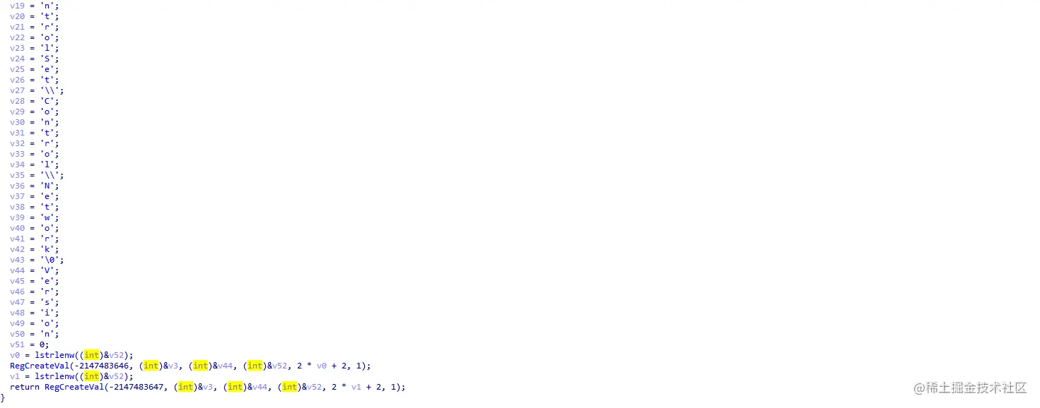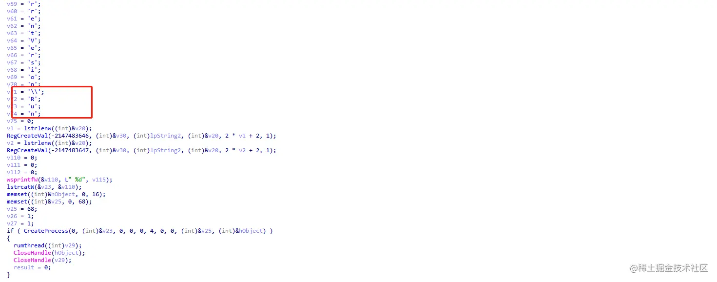 可以看到这里创建了文件夹,文件夹中创建了三个文件。最后有设置了注册表自启动,并退出当前进行,启动了拷贝入新目录的进程。