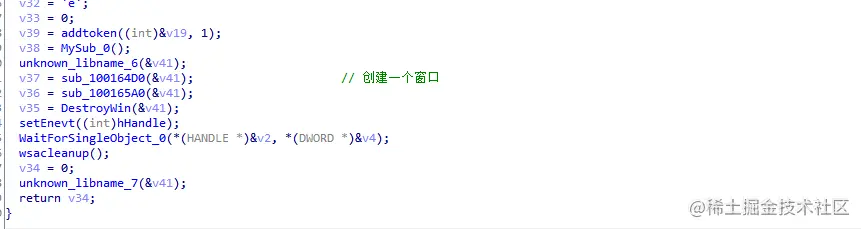 这里是获取消息并处理。DestroyWindow是销毁窗口。最后看79行MySub_0,里面是创建了一个线程,跟进去回调: