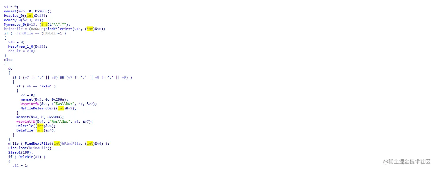 可以看到这里就是删除文件,删除目录等操作。返回上层,看第四个函数sub_100119A0: