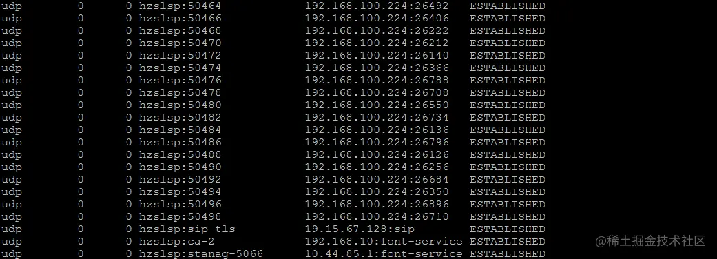 检测服务器发现,之前的端口信息没有释放,都在链接,如下: