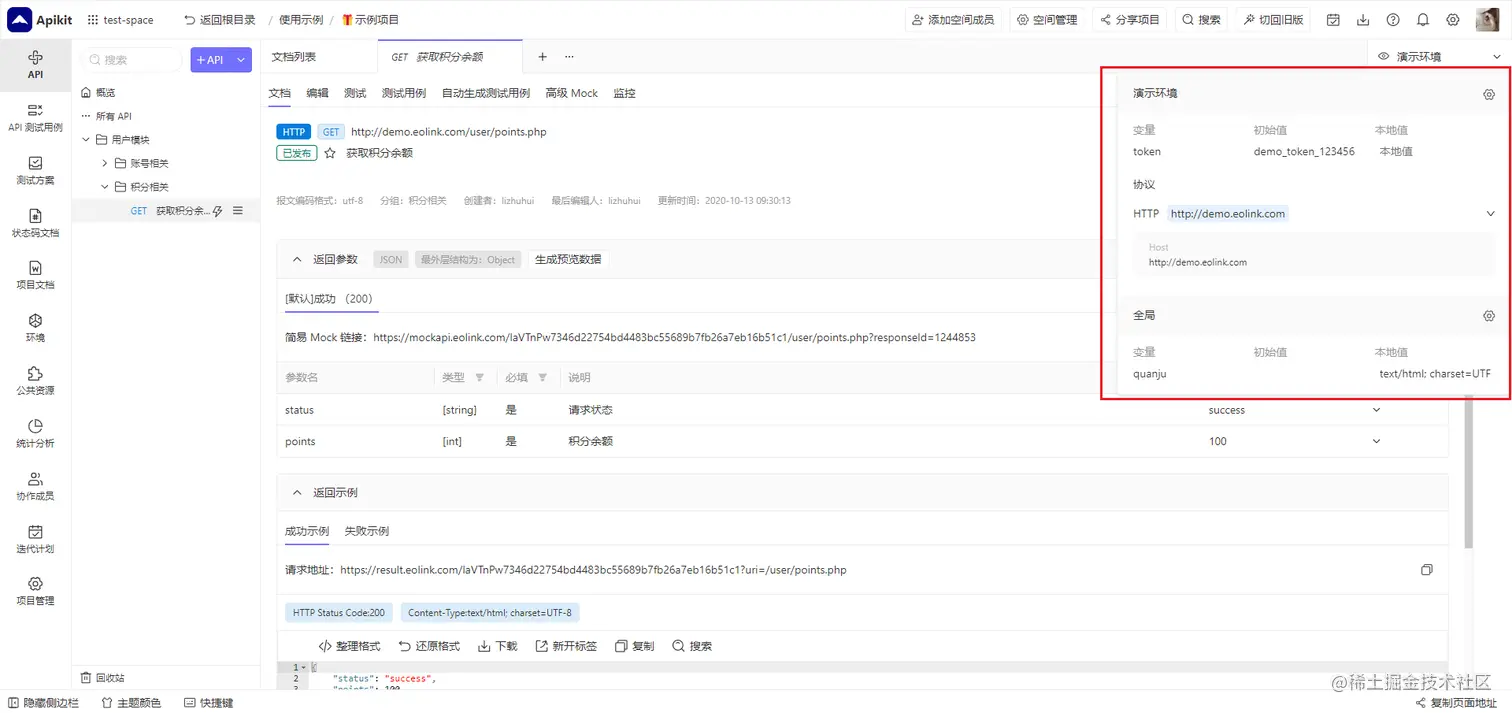 在API研发管理中,可以通过点击页面右上角预览环境按钮来查看当前的自定义全局变量值,如下图