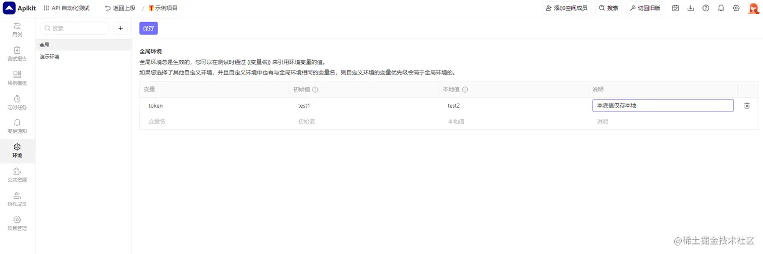 对项目内全局有效,但优先级低于环境变量。即若全局变量和环境变量的变量名均为token,则取环境变量值