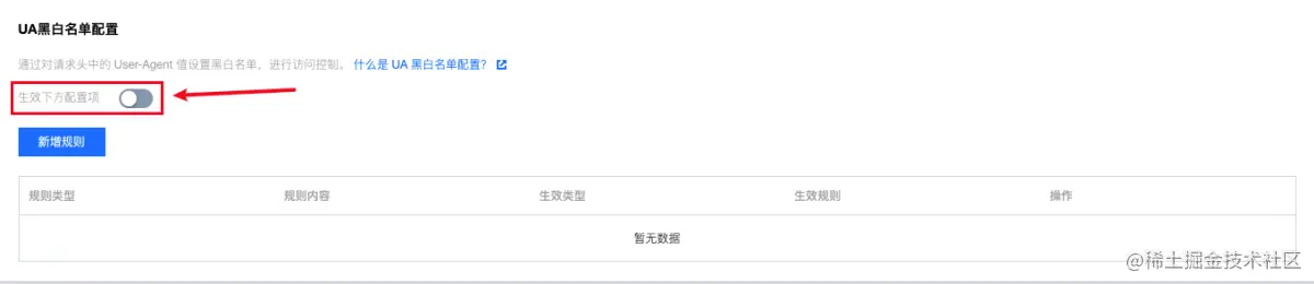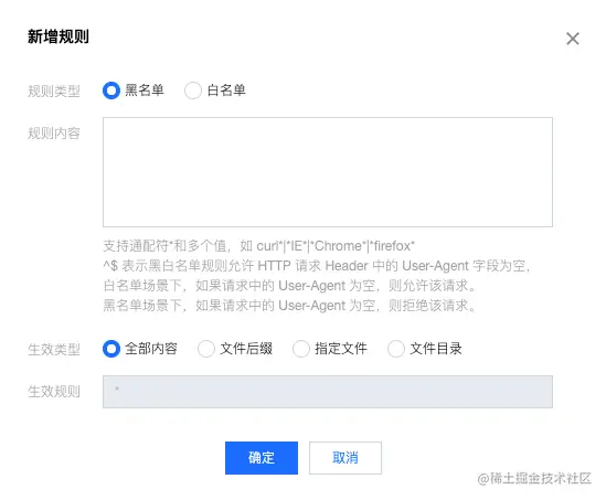 通过对用户请求头中的 User-Agent 字段设置相应的判断规则,按需放行或拒绝访问。 常见盗刷场景UA头部 - 空 - curl/xx.xx - Wget/xx.xx - ApacheBench/xx.xx