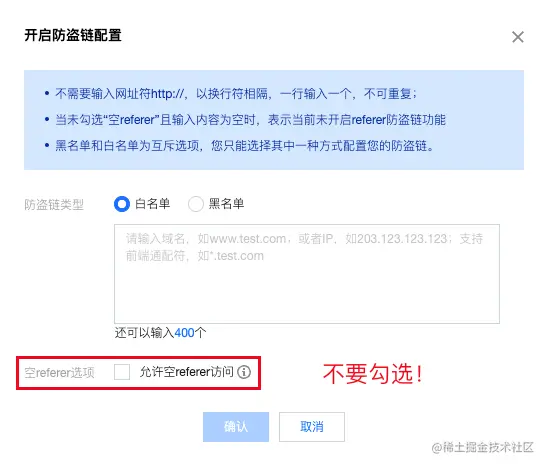 配置加速域名的防盗链,不要勾选允许空referer访问