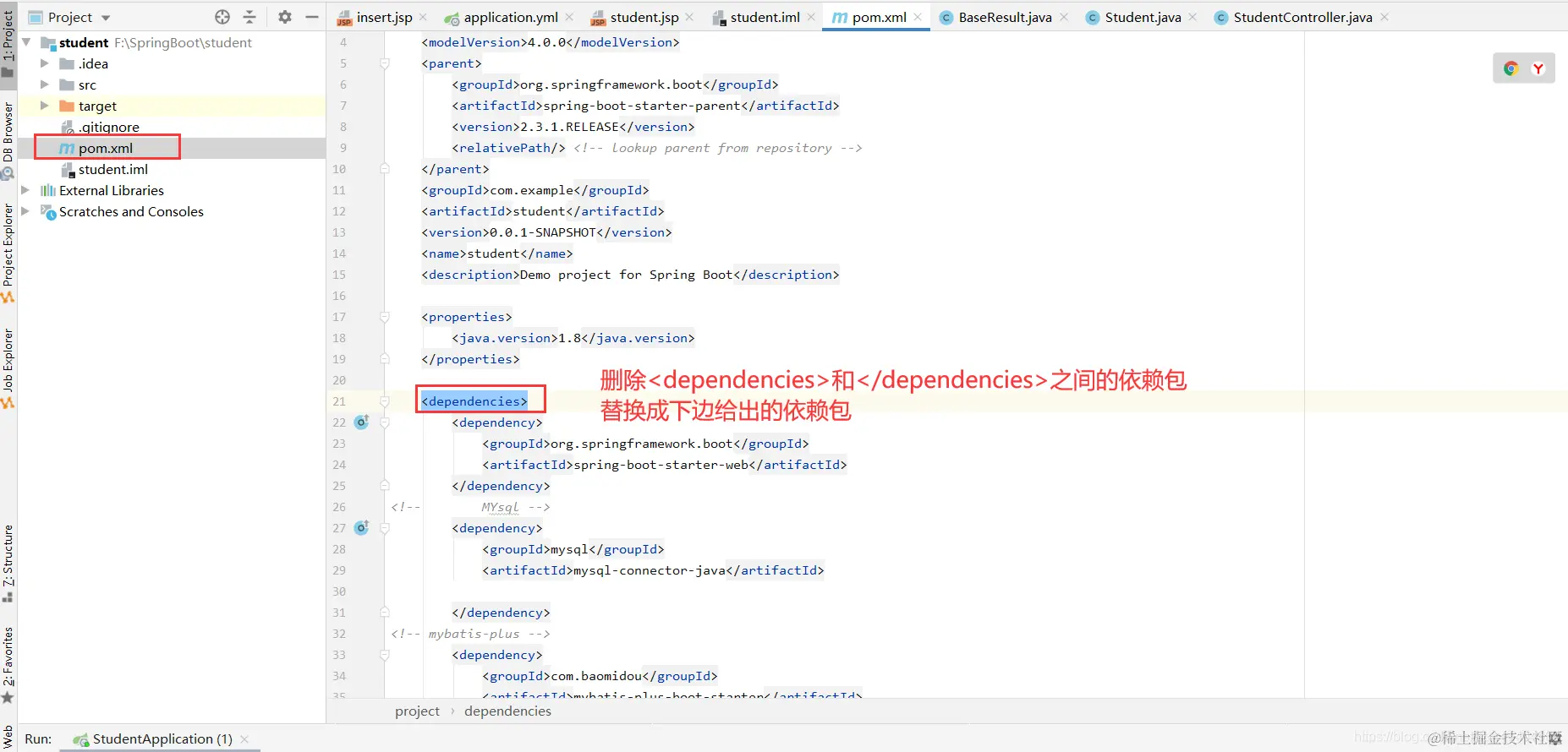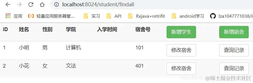 注意:StudentController注解是 @Controller 而不是 RestController 。