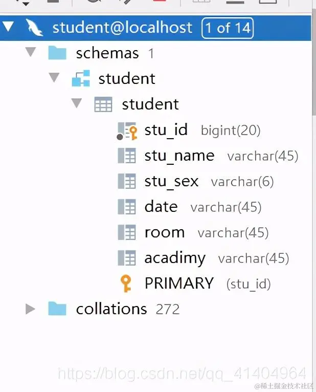 #下一行中student 改为 自己建的database
