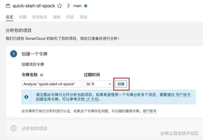 接着,创建一个 token 令牌,点击创建按钮,如下图所示。