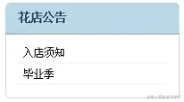 用户在首页可以浏览花店公告,通过点击花店公告的标题可以查看花店公告的详细信息。花店公告页面以及公告详情页面设计如图