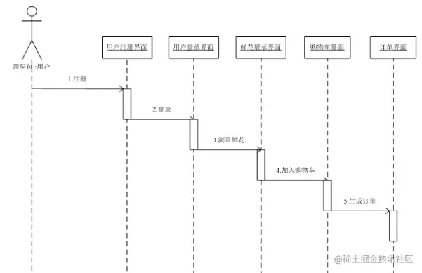 用户购买鲜花时序图如图