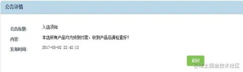 公告展示模块是管理员发布的与网上花店系统相关的公告信息,可以包括系统的使用或者最新的优惠活动等。用户登录系统后,可以查看公告信息,以此来最快的了解系统。