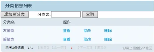 管理员通过此功能可以查看、修改、删除已经存在的分类,也可以增加新的分类。该系统分类管理页面如图