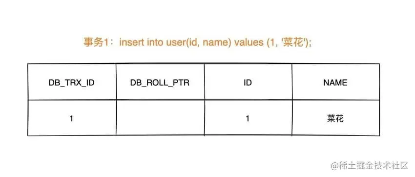 DB_TRX_ID为 1,满足 1 < m_up_limit_id,可见,所以事务 103 查询到数据为name = 菜花