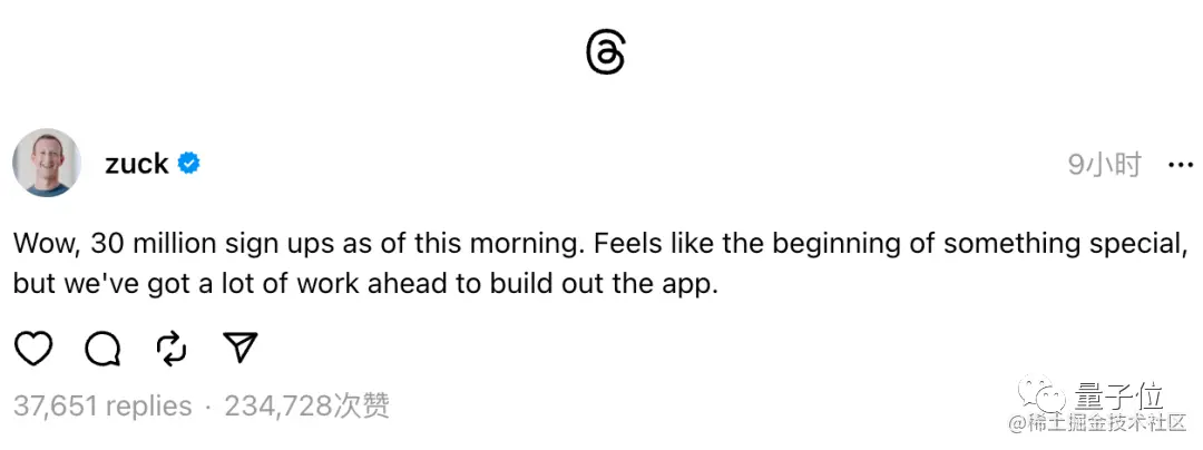 自上线以来,Meta CEO 扎克伯格就持续通过自己Threads帐户发布新增用户数。