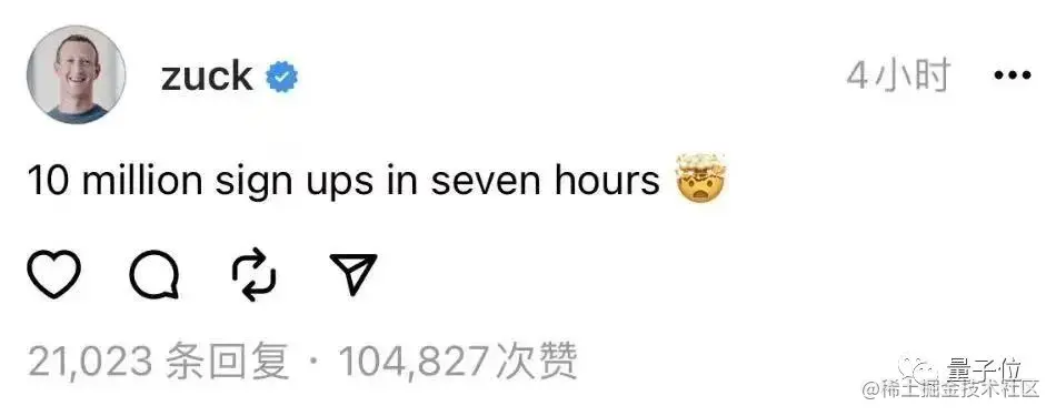 这是Meta对标推特产品Threads,上线7个小时的成绩。