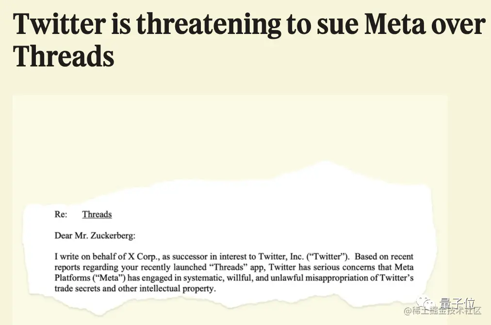 也许是眼红Meta,在Threads发布几个小时后,推特公司律师就致信Meta CEO 扎克伯格。