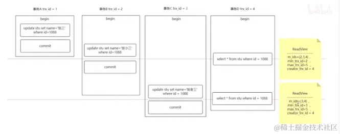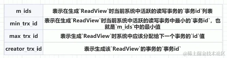 那么ReadView长什么样子呢?4个字段的数据结构