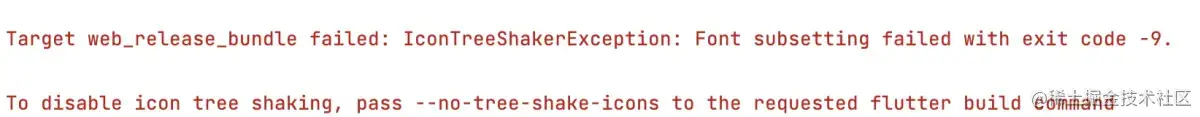 这是个图标数据加载问题,我们加上--no-tree-shake-icons即可。执行命令如下: