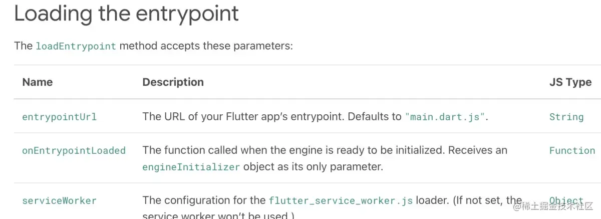 看到<script src="flutter.js" defer></script>这行。而main.dart.js是我们的dart业务代码被编译成的js文件。flutter.js会加载main.dart.js和其它文件。默认情况下,flutter.js会加载各个文件,包括资源文件(assets)都使用的是相对路径。首先就是通过loadEntrypoint ()方法加载main.dart.js这个文件:
