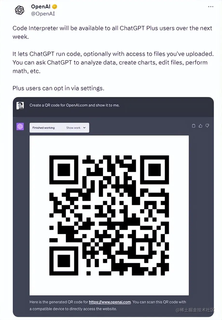 OpenAI在7月8日凌晨在其社交平台上宣布了一项重大突破:下周将向所有ChatGPT Plus用户开放代码解析器功能。 据称,这一功能是自OpenAI发布GPT-4以来最强大的功能之一,为用户提供了许多强大的能力。