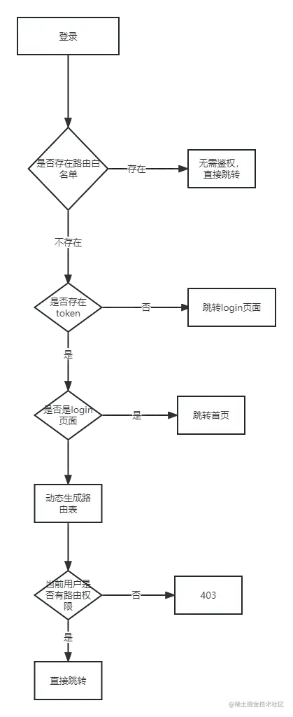 - 在router.beforeEach中判断,当前路由是否是存在前端白名单中(一般用于第三方登录鉴权方式)