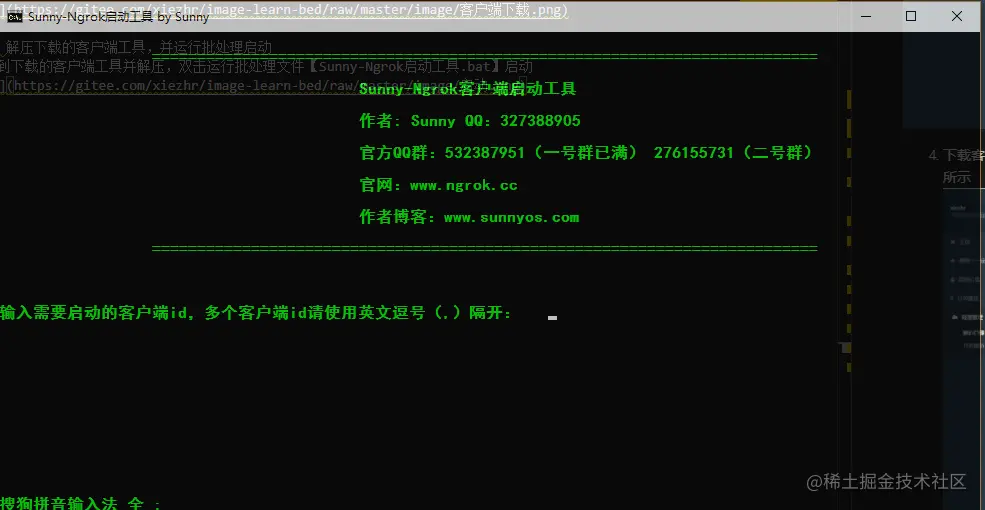 找到下载的客户端工具并解压,双击运行批处理文件【Sunny-Ngrok启动工具.bat】启动