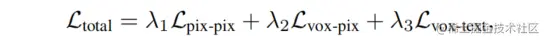 论文离线生成文本embedding,通过将类别文本与提示模板(例如,“一张{category}的照片”)输入文本编码器 进行编码。然后,计算体素embedding和文本embedding之间的余弦相似度。最后,应用 softmax 激活函数生成最终的预测结果。论文的目标是训练体素embedding,使其可以通过文本embedding进行分类。如图2所示,它用文本embedding替代了可学习的分类器。只有基础类别的文本embedding被用于训练。对于那些在基础类别中没有匹配到任何真实标签的体素,它们被分配到背景类别。体素到文本对齐的损失函数可以表示为。