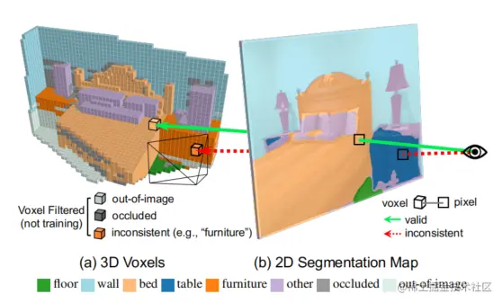 - Label Consistency Filter:为了消除LSeg中的不准确预测,开发了额外的滤波过程,以消除具有与其相应的2D像素不一致的语义标签的体素。