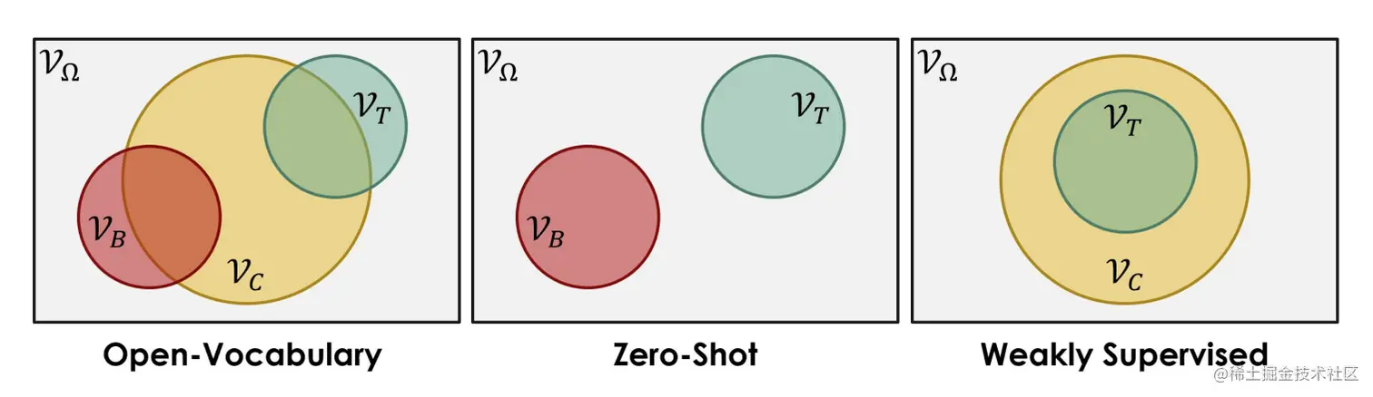 **Open-Vocabulary:**Open-Vocabulary方法旨在处理具有大量类别的任务,并不受固定词汇表的限制。它允许模型在训练和推理阶段处理未知的类别,从而具有更广泛的应用范围。