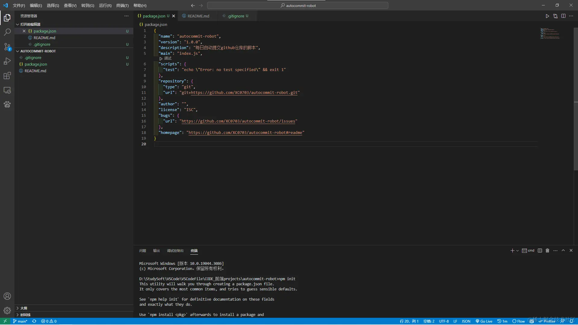 首先在自己的github上创建一个名为autocommit-robot的仓库,然后git clone 项目地址到本地打开即可,此处不赘述。