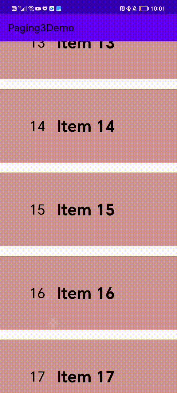 通常用户习惯会反复上拉列表来触发加载更多,因此我们只需要监听Touch事件,计算用户上拉距离,超过阈值时调用PagingDataAdapter.retry()方法,因此我们需要对第三步的使用稍微改造一下:
