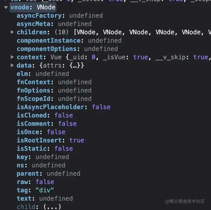 还有它的data属性,key属性,parent属性,你能想到的dom节点的所有属性都有表示。