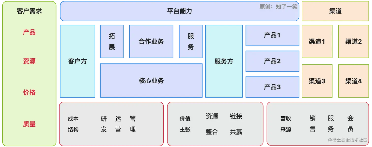 作为公司内部商务常用的模型图,主要围绕客户需求,平台能力,商务资源三方面;