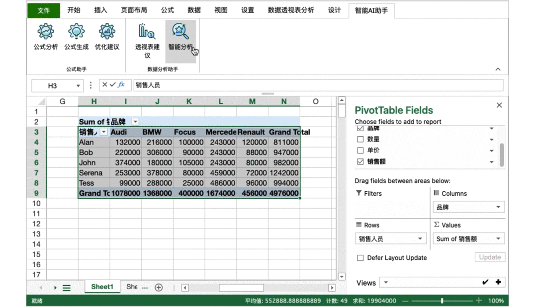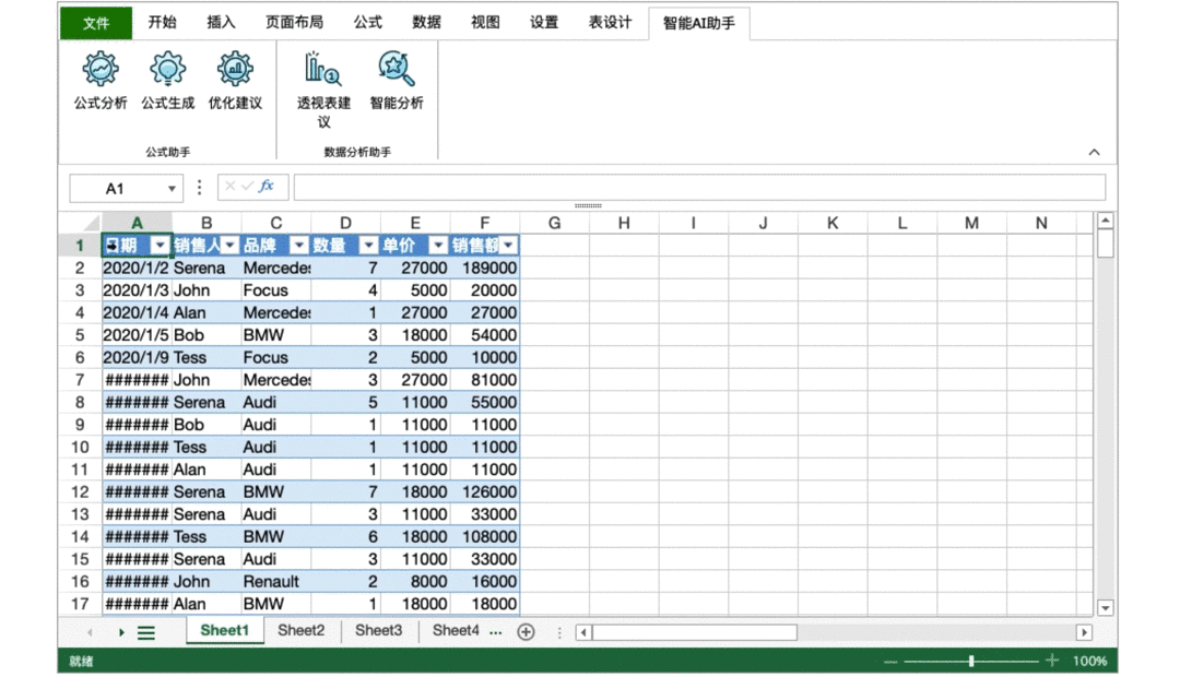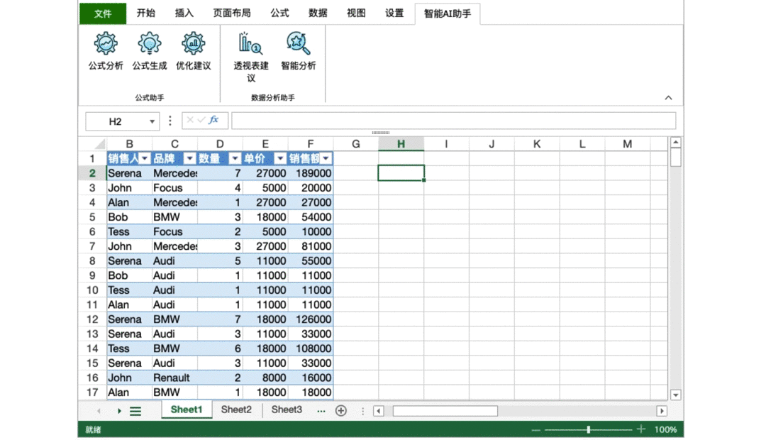 一、使用助手:根据需求提供操作指南、按照描述生成公式。