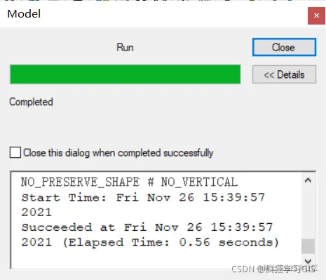 可以看到,这里其实就是我们一般用ArcGIS下属各类工具时的参数窗口;而由于我们已经给模型设定了初始数据,因此其第一项参数是默认的。我们对输出数据路径及投影坐标系加以选择即可。
