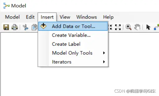 在“Model”界面上方,选择“Insert”→“Add Data or Tool... ”。