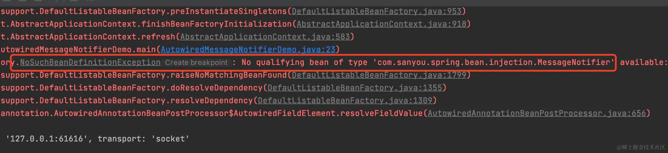 比如说,MessageNotifier这个对象Spring容器中并没有,如果直接注入,此时会抛NoSuchBeanDefinitionException异常