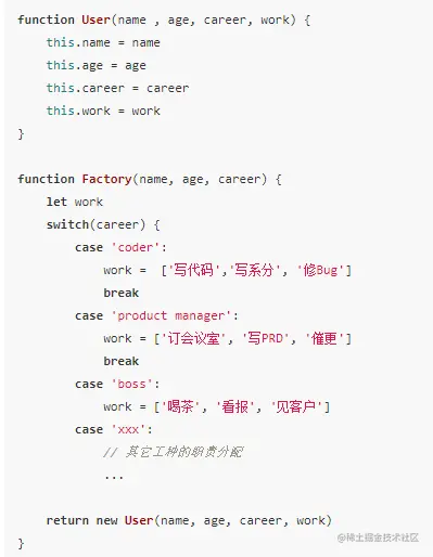 就是ES5构造函数,new一个实例,传不同的数据,实例化不同的对象。new的过程变的是value,不变的是key。构造器将 name、age、career 赋值给对象的过程封装,确保每个对象都具备这些key,不变的地方稳定。同时将 name、age、career 的取值开放,确保变化部分灵活。本质是抽象每个实例的变与不变。