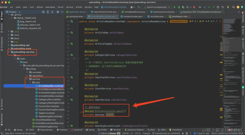 首先我在 yml 中增加了是否开启 ES 值。