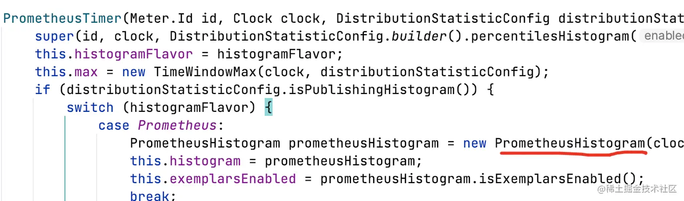 特点是PrometheusHistogram在构造父类时,写死了两个参数: