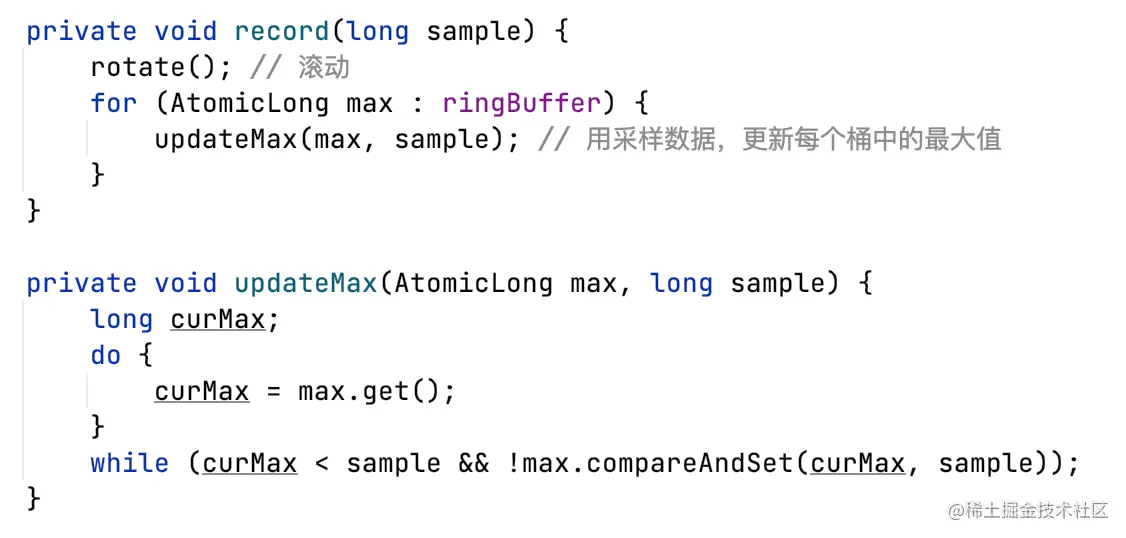 和TimeWindowMax类似,通过一个环形数组存储埋点值。