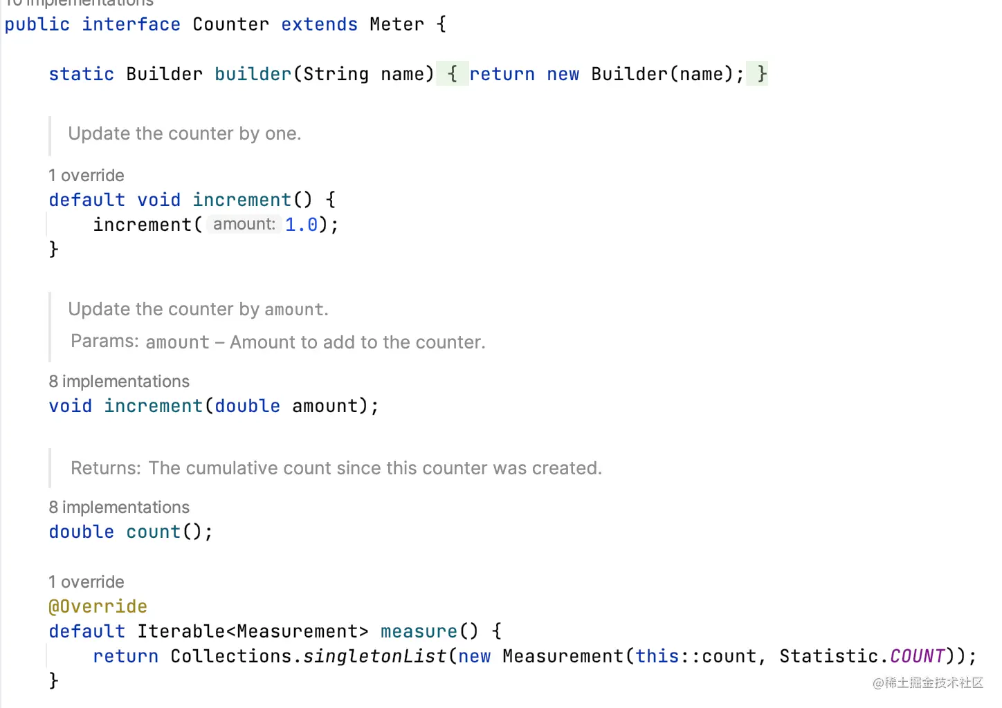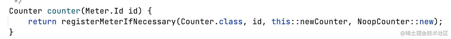 MeterRegistry提供一些方便使用的注册Meter方法,比如注册一个Counter类型的meter。