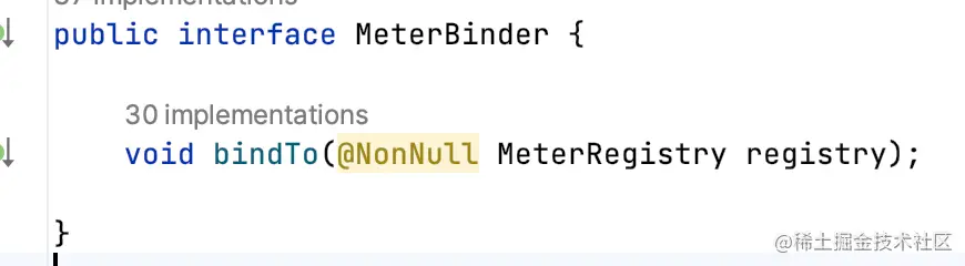 部分Metrics会实现MeterBinder接口,将Meter注册到MeterRegistry。