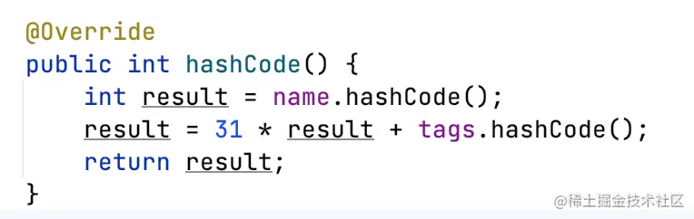 Id#hashCode:但是Id的唯一性,仅由name和tag决定。(equals代码不贴了,太长)