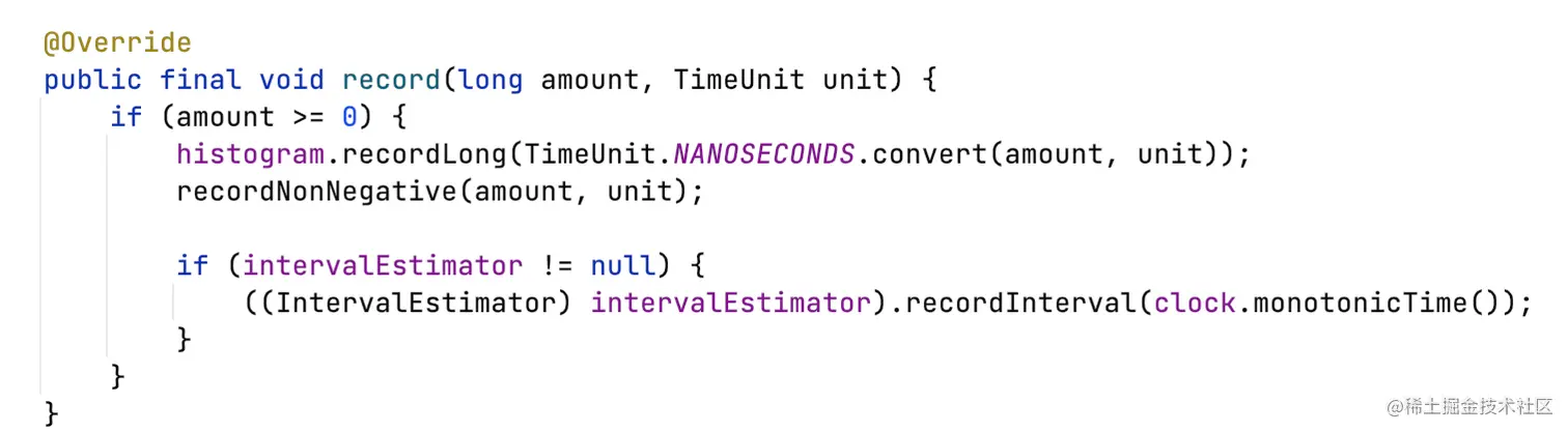 在记录采样值时,调用HdrHistogram记录。