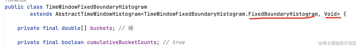 - T:底层环形数组元素,是内部类TimeWindowFixedBoundaryHistogram.FixedBoundaryHistogram;